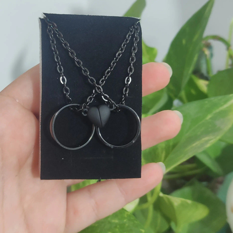 ست زیبای( گردنبند )کاپل بسیار جذاب و عاشقانه استیل و رنگ ثابت در هر رنگی با آویز قلب مگنتی