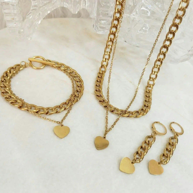 ست گردنبند و دستبند و گوشواره با آویز قلب