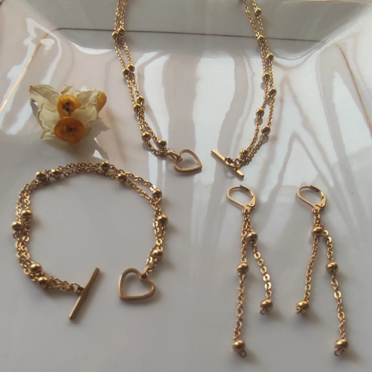 . 🔅ست زنجیر توپی 🔅 با بهترین کیفیت زنجیر🥰 تمام استیل ،رنگثابت با قفل تی دایره ای هم قابل ساخـــــت هـــست دستبند:۹۸ گردنبند:۱۳۰ گوشواره:۸۰