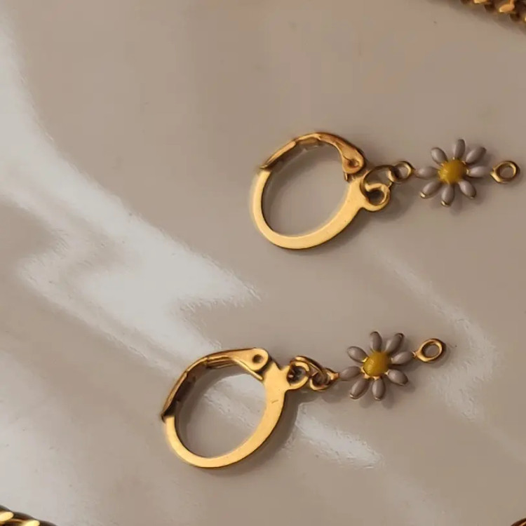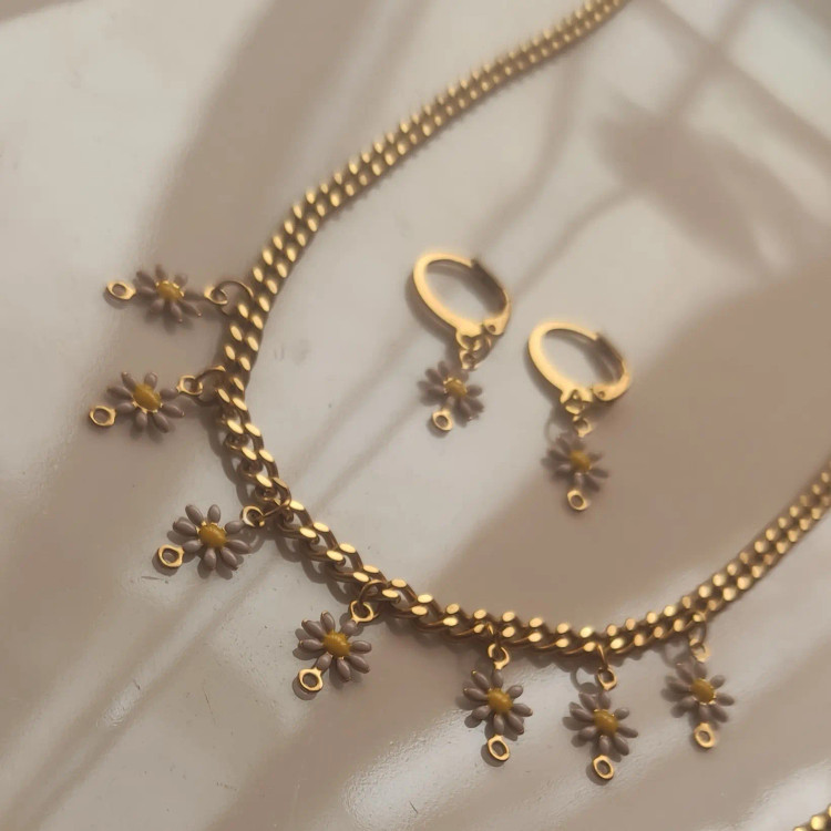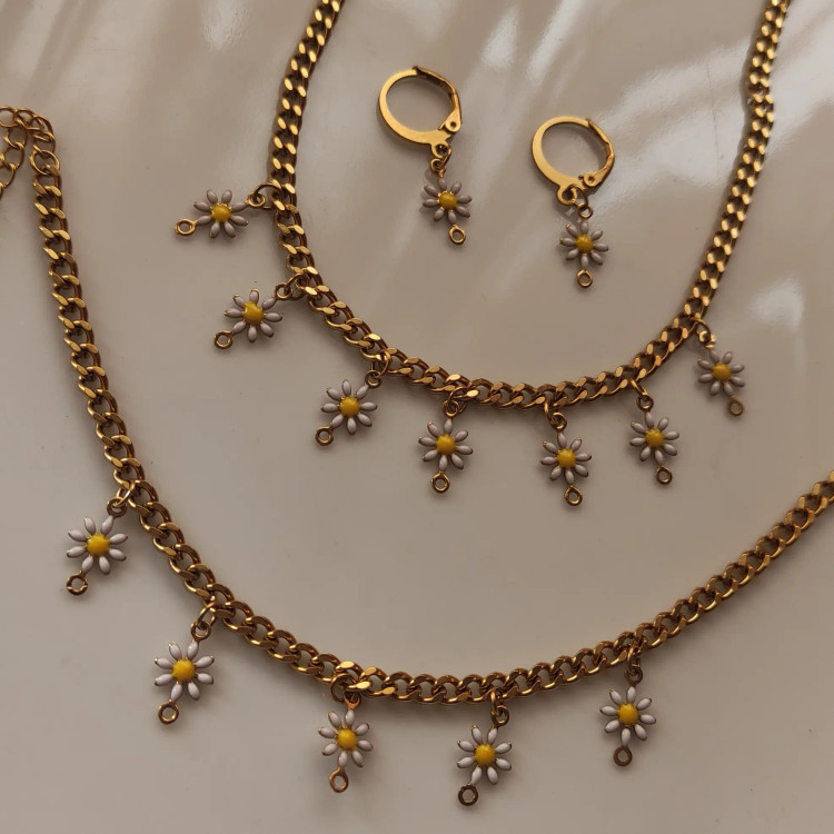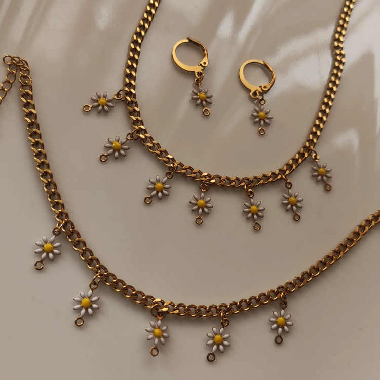 ست زیبای بابونه بسیار شیک و جذاب رنگ ثابت استیل #گوشواره #گردنبند #دستبند #انگشتر گوشواره حلقه ای هم قابل سفارشه