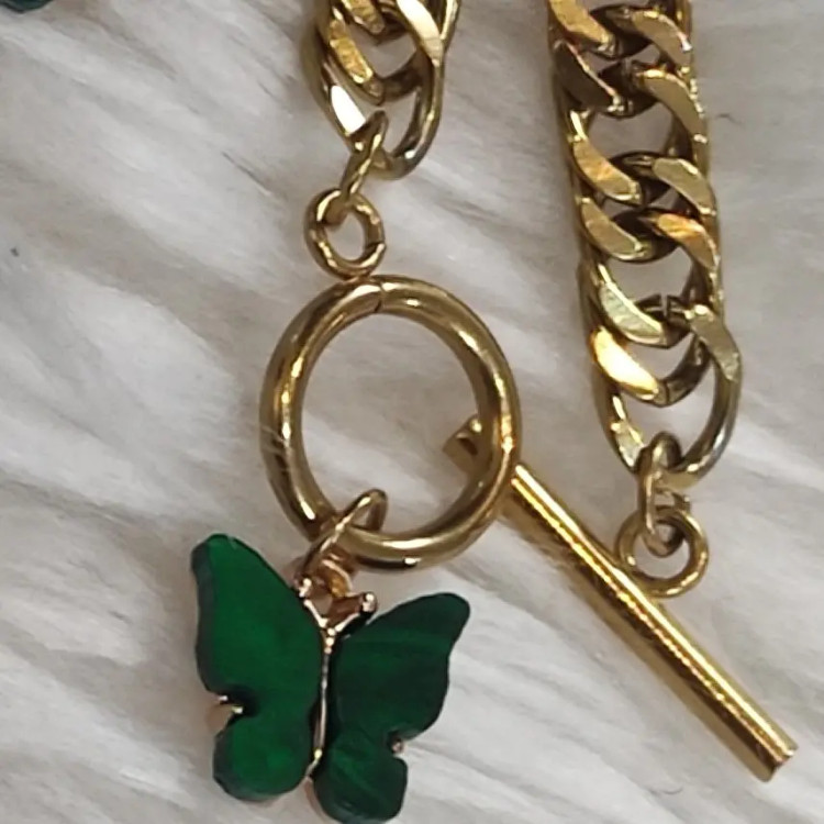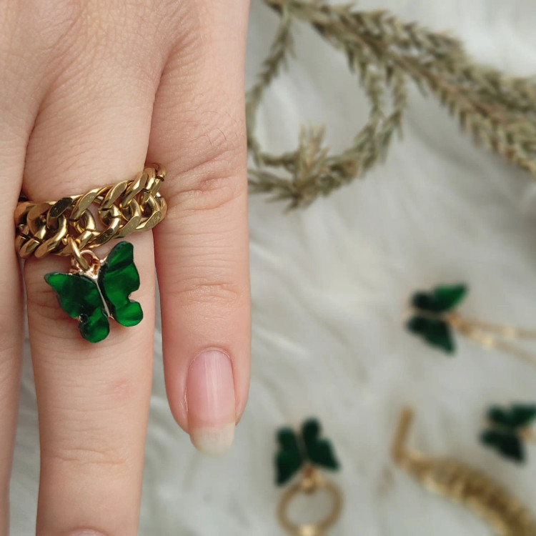 ست کااامل و جذاااب پروانه یشمی که هم دستبند و هم گوشواره و هم انگشتر و هم گردنبند داره استیل رنگ ثابت مناسب هدیه