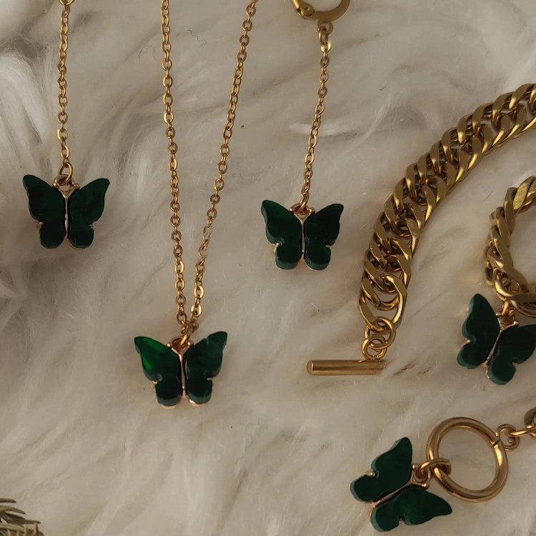 ست جذاااب پروانه یشمی گردنبند و گوشواره و دستبند و انگشتر