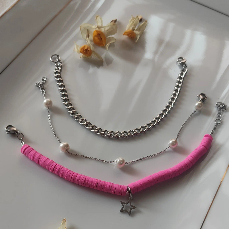 ست دستبند سه تایی نقره ای استیل رنگ ثابت